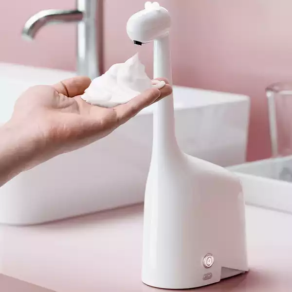 Với hình dạng hươu cao cổ vô cùng dễ thương, giúp việc rửa tay trở nên thú vị hơn. Nó sẽ tạo bọt cảm ứng từ 4-6cm, không tiếp xúc, an toàn và chắc chắn hơn, tạo bọt cực nhanh trong 0,25 giây